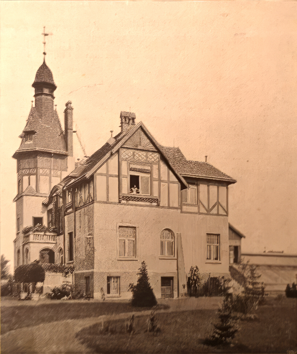 1900 - so genanntes Hirsch sches Haus (1895, Wappen über der Einfahrt) im Besitz des Wilhelm Krutziger (s.u.) mit Posamentierwaren-Handlung (Kleiderborten, -besatz usw.) der Martha Naumann