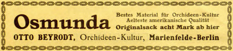 | 395 | 1911AHM  1911 - Gärtnerei für Orchideenzucht Otto Beyrodt, Berliner Straße 125-127 - Inserat für eine Spezial-Erde