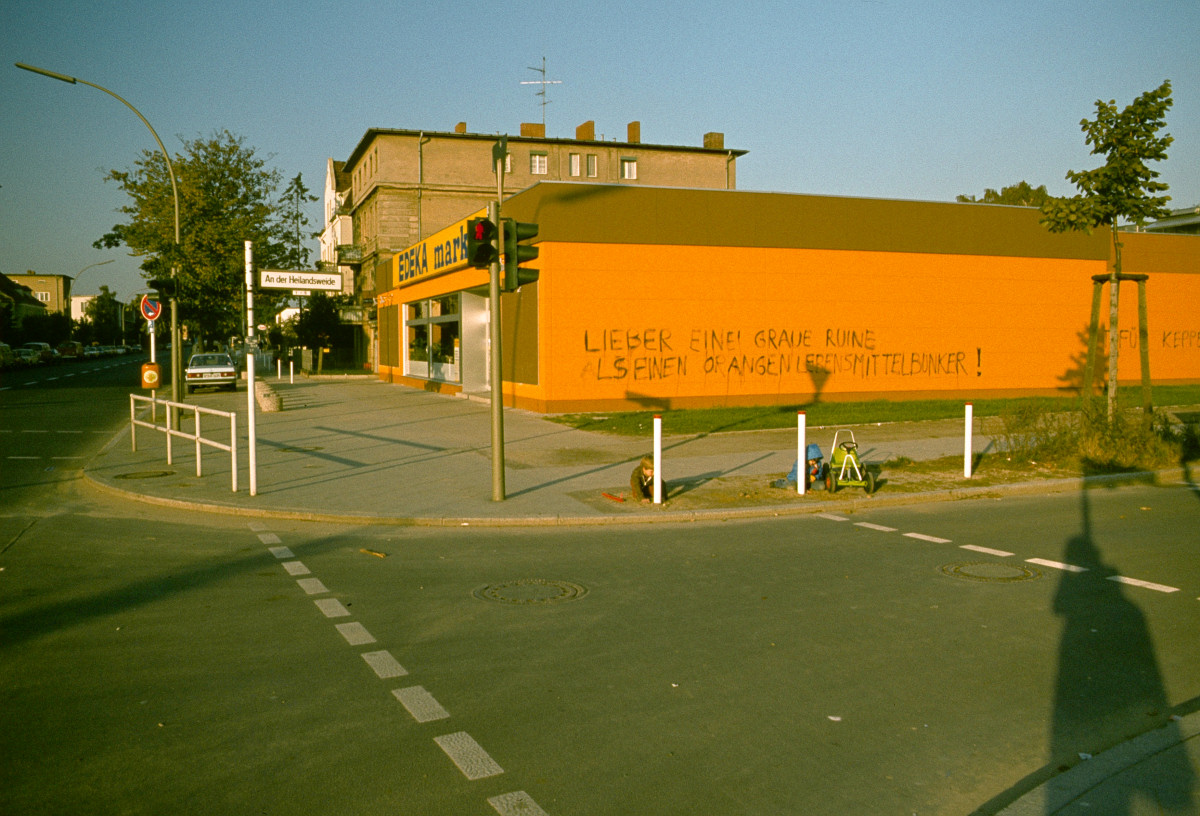 16 | 1979 AHM 1979 - Neubau des EDEKA-Geschäfts Marienfelder Allee 101; aufgenommen im September 1979 Archiv "Arbeitskreis Historisches Marienfelde" Handel und Gewerbe Marienfelder Allee