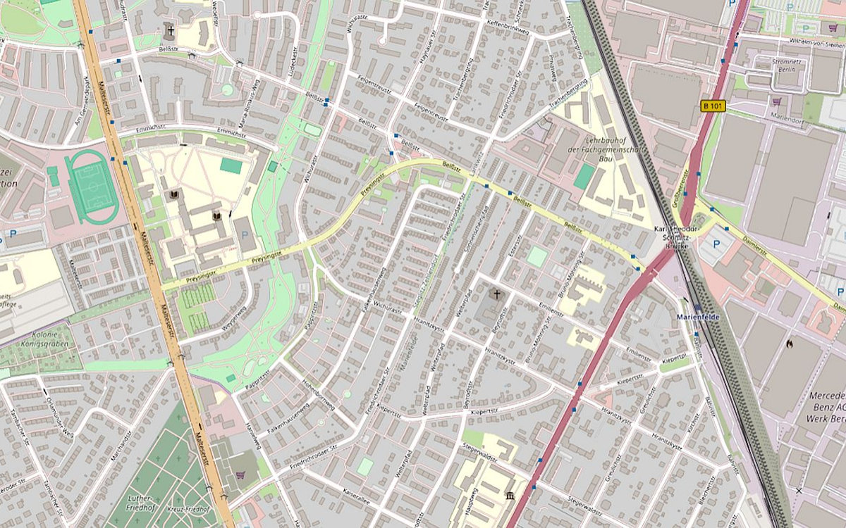Hranitzkystraße => Bahnstraße/Marienfelder Allee - Parallelstraße <=