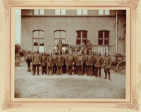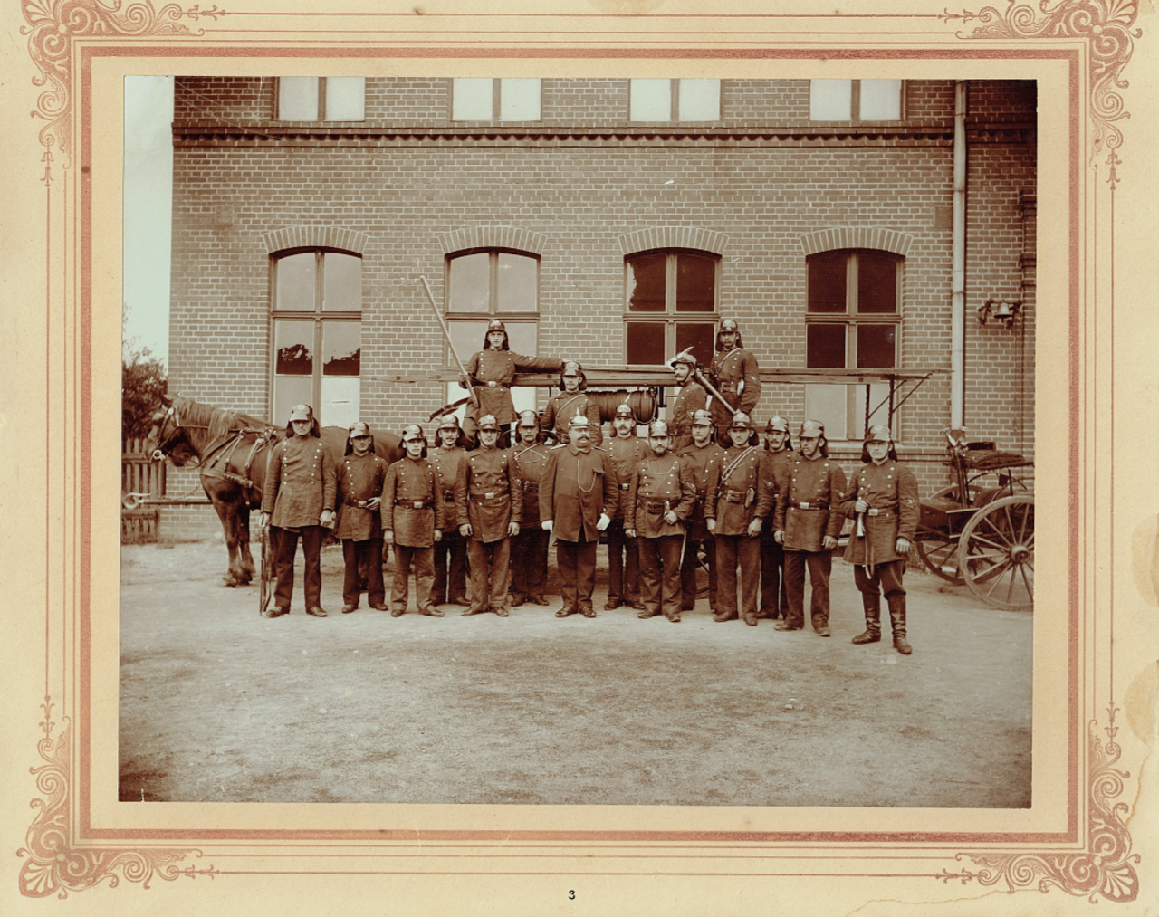 1905 - Feuerwehrleute der Freiwilligen Feuerwehr Marienfelde auf dem Hof in der Dorfstraße