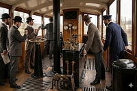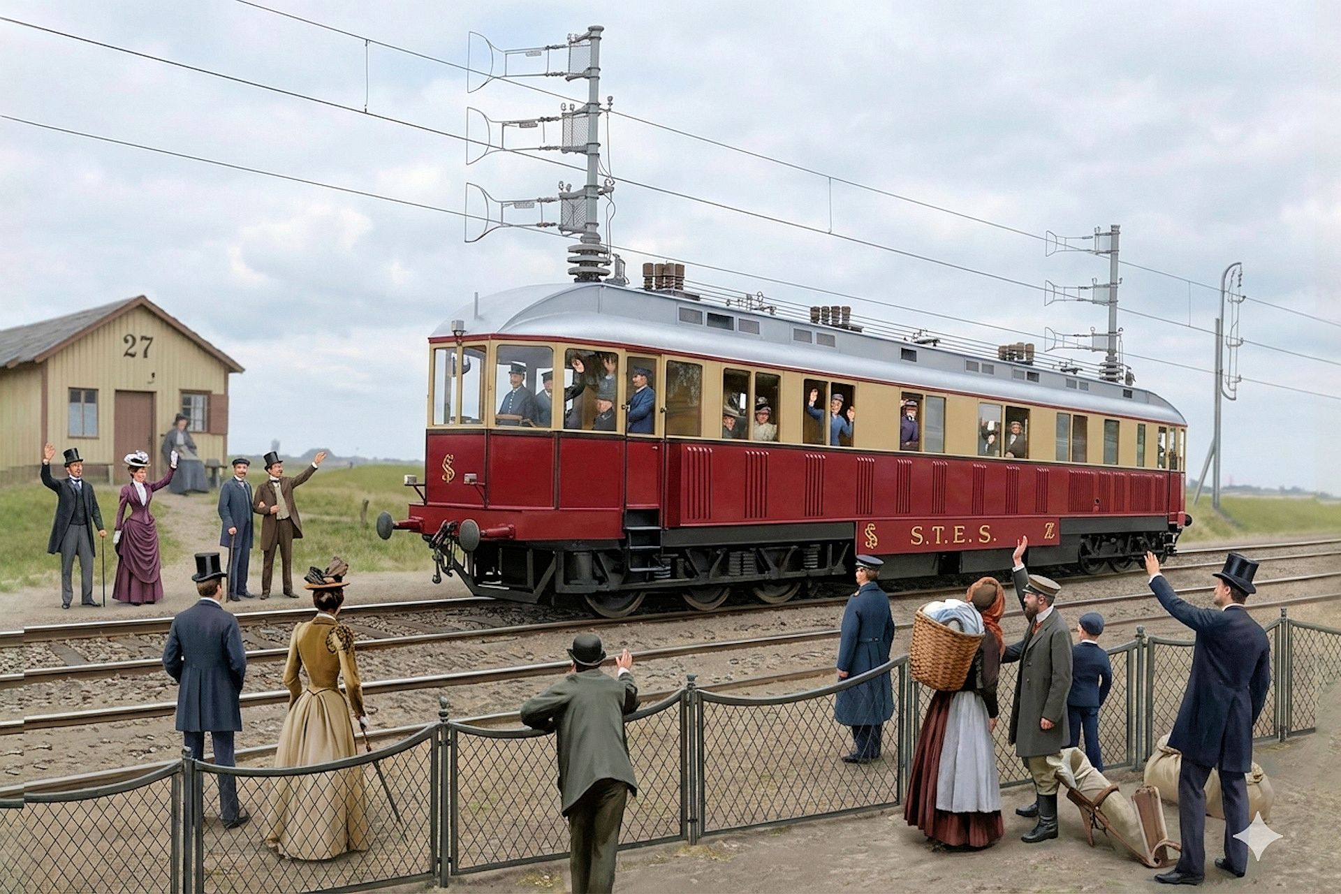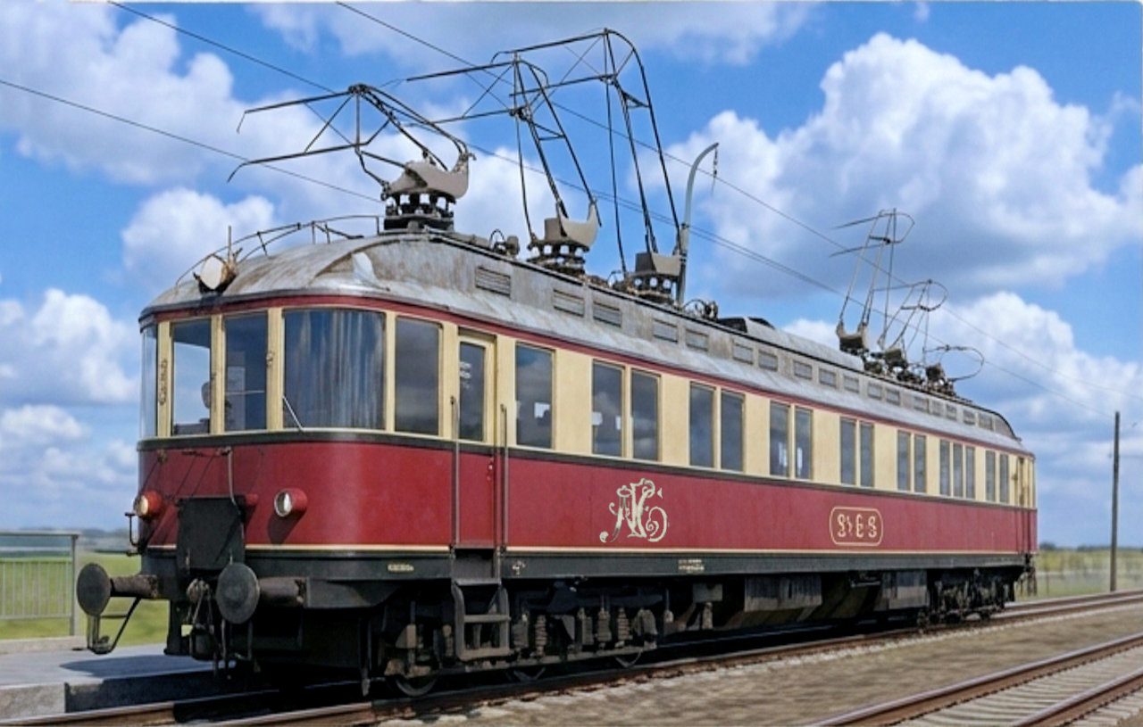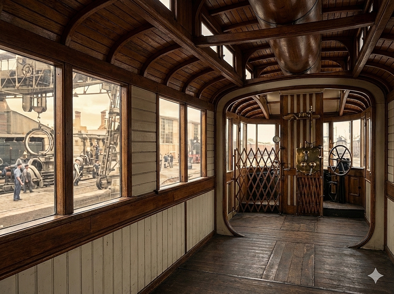 An jedem Ende des Wagens befindet sich ein Führerstand. Von dieser Ansicht des Führerstands des Fahrzeugs von Siemens & Halske gibt es verschiedene Varianten Diese Abbildung wurde mit Gemini KI bearbeitet.