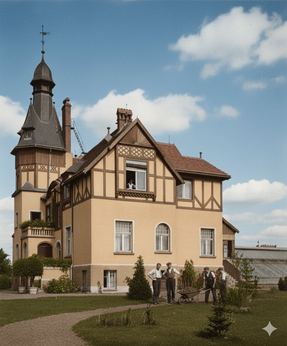 1900 - Radfahrer vor der Villa Horstenstein des Baumschulenbesitzers Rudolf Wilke